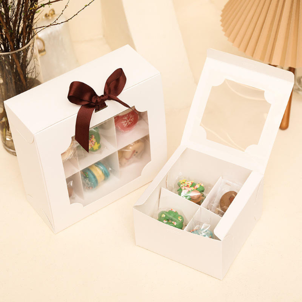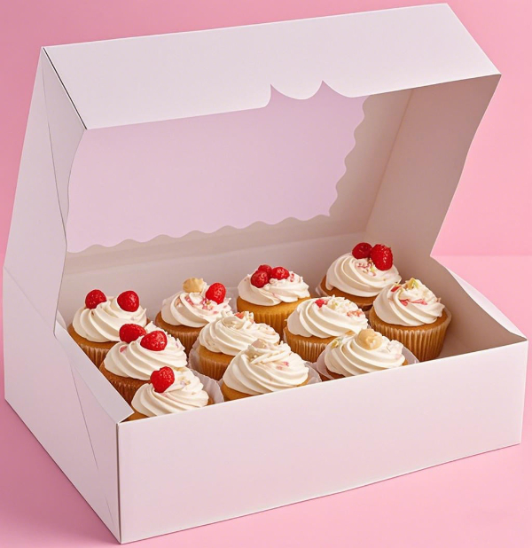 Both white cardstock and PET materials comply with food contact standards, ensuring safe and hygienic pastry packaging.