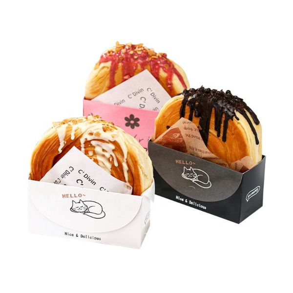Both white cardstock and PET materials comply with food contact standards, ensuring safe and hygienic pastry packaging.