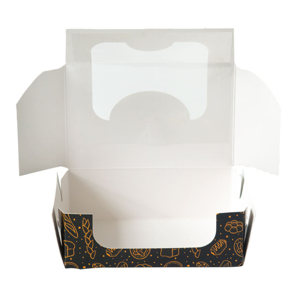 Both white cardstock and PET materials comply with food contact standards, ensuring safe and hygienic pastry packaging.