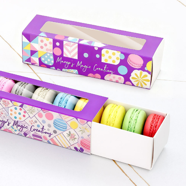 Both white cardstock and PET materials comply with food contact standards, ensuring safe and hygienic pastry packaging.