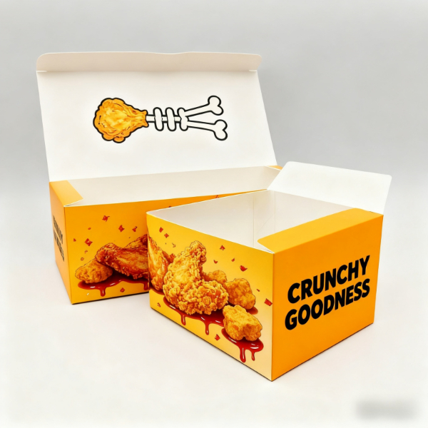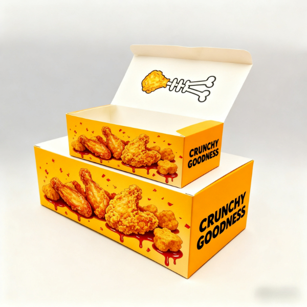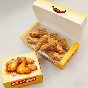 Biodegradable Disposable Paper Fast Food Box Square-shaped Containers for Chicken Fries Stamped Print Fast Food Packaging