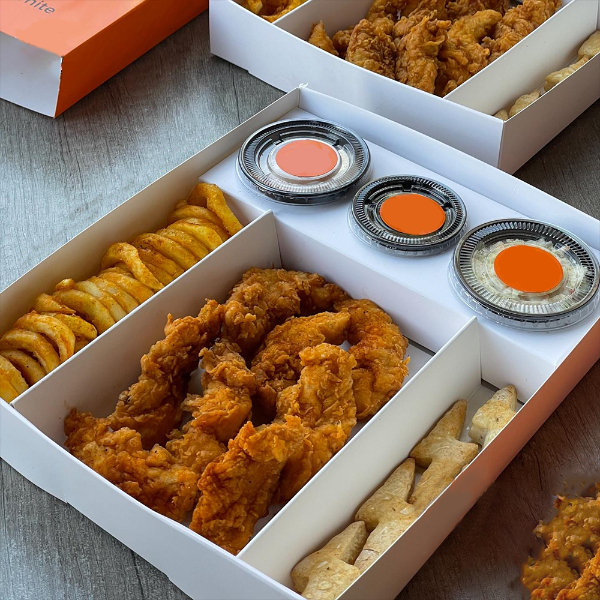 Custom Compartments Dip French Fries Chicken Wings Onion Ring Box Drawer Food Hot Corn Churros Dog Packing Take Away Paper Box