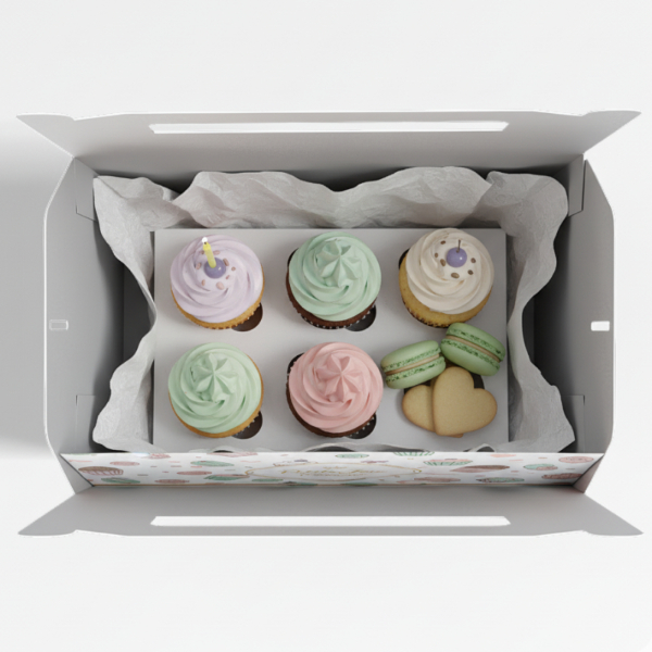 Custom Eco-Friendly Cardstock Macaron Pastry Box Adorable Cake Cookie Gift Packaging Tuck End Box Matt Lamination Embossing