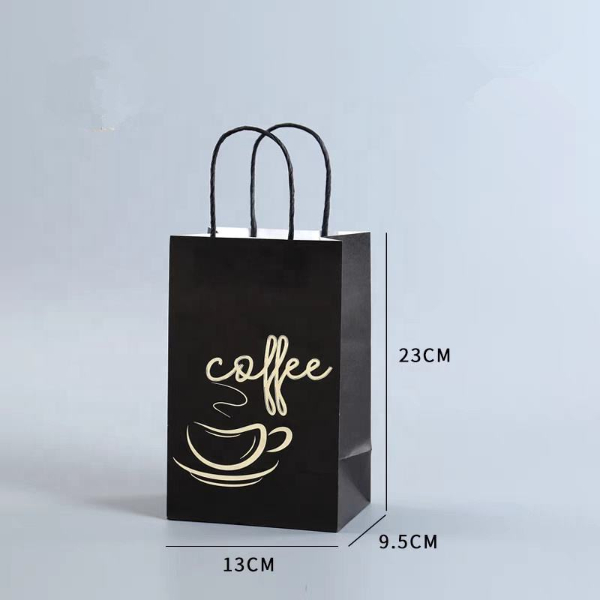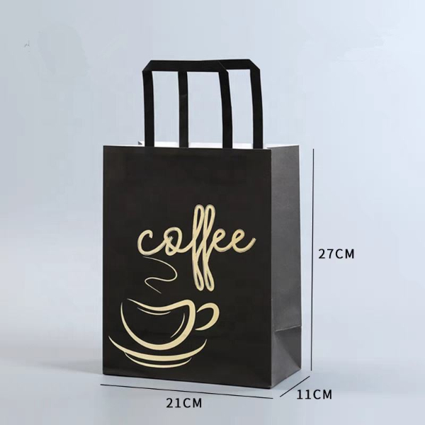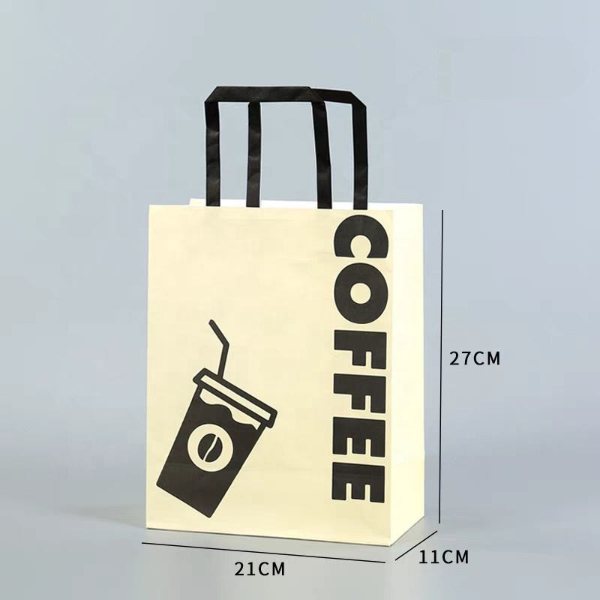 Custom Logo Printed Brown Kraft Paper Shopping Bag Food Delivery Takeaway Coffee Paper Bag Gift Bag with Handle