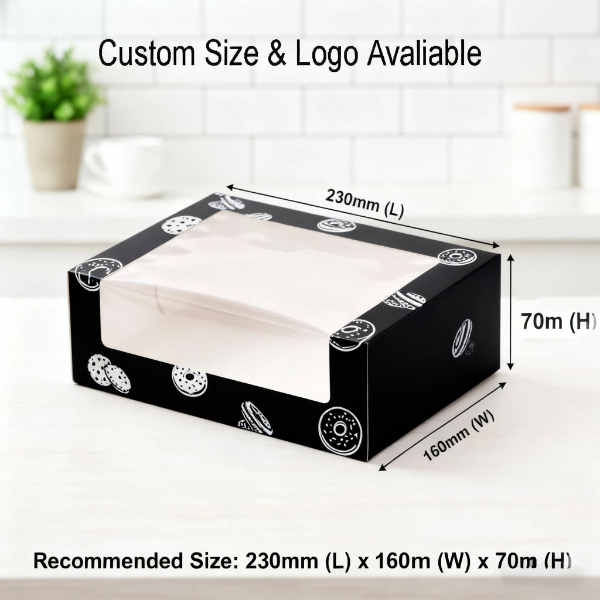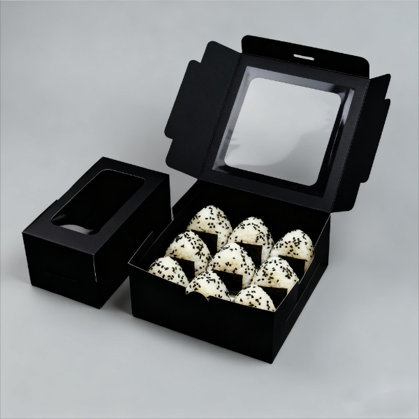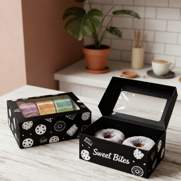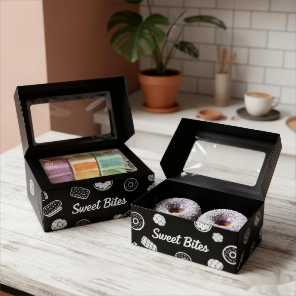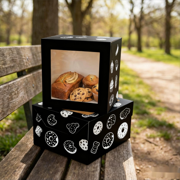 Custom Luxury Black Gold Bakery Boxes with Window for Trendy Cakes Croissants