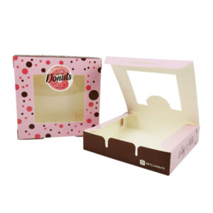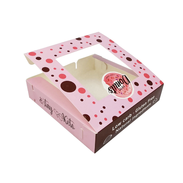 Customized Printing Bakery Donuts Take Away Sweet Box Paper Box with Plastic Window