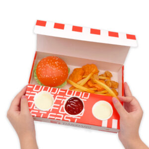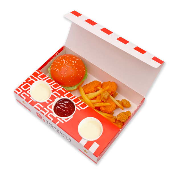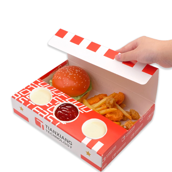Food Packaging Custom Biodegradable Take Out Boxes Burger and Fries Box Chicken Wing Packaging Box With Sauce