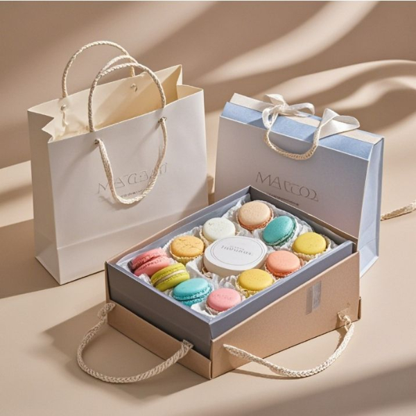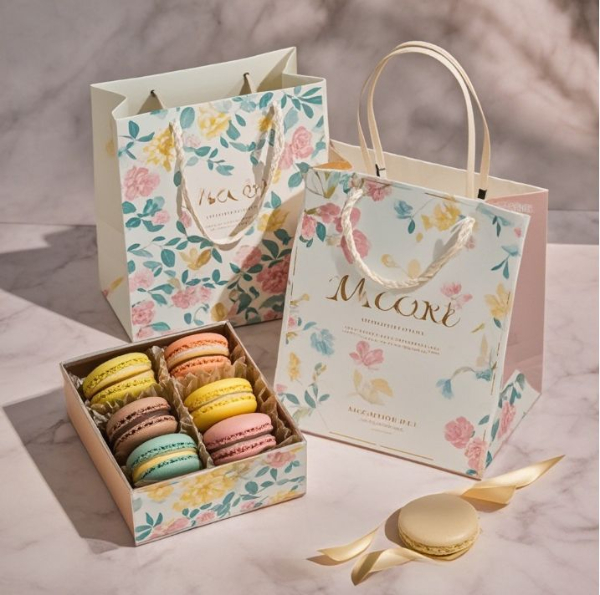 Free Design Custom Logo of high-end food grade macaron chocolate paper packaging box macaron cake gift box