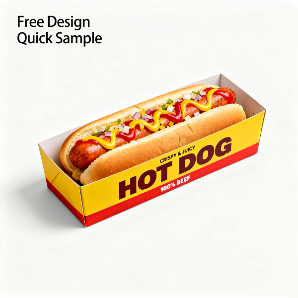 Large Custom Paper Food Boxes with Recycled Materials Burger Hot Dog French Fry Cake & Waffle Packaging Custom Colors
