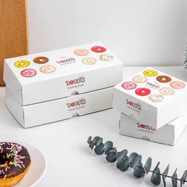 White Cardboard Baking Dessert Box Dessert Container Egg Tarts Macarons Donuts Cookies Box for Packaged Takeaway